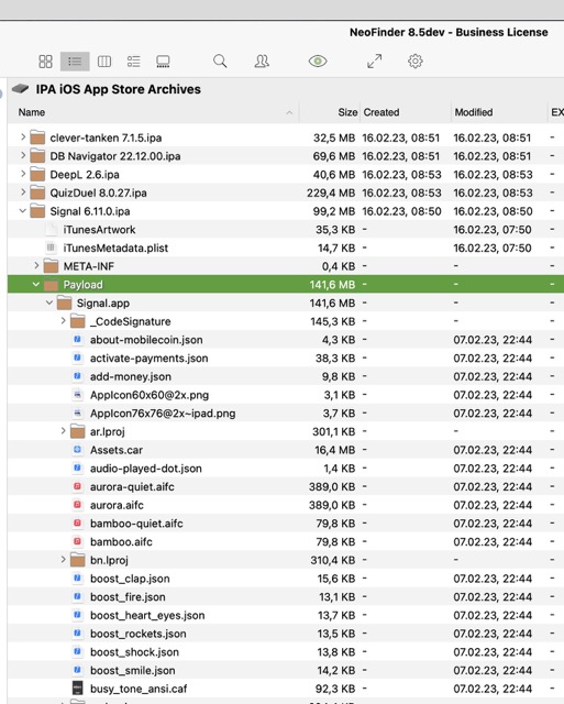#NeoFinder8 can now look inside .IPA archive files as well. These are used by the Apple iOS App Store and contain iOS application bundles.